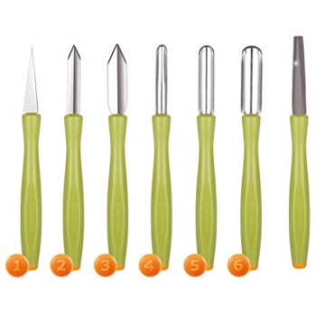 Универсальный комплект идеально подходит для украшения фруктов и овощей: моркови, белой редьки и редиса, огурцов, кабачков, лука-порея, тыквы, яблок, груш, манго, дыни и т.п.