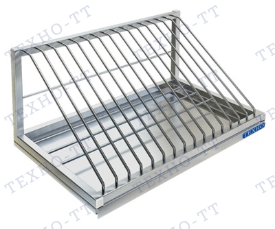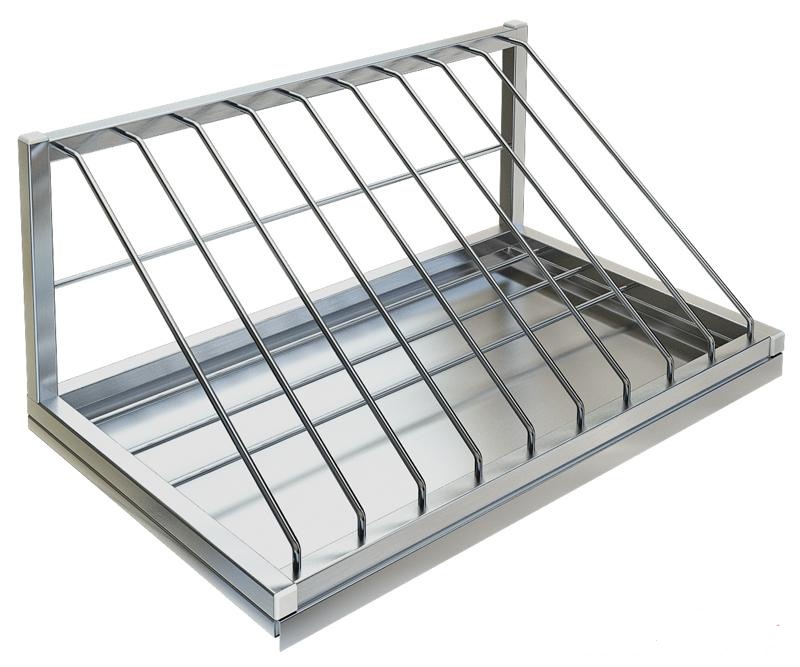 Полка настенная для досок Техно-ТТ ПН-117/600З - предназначена для сушки и хранения разделочных досок на предприятиях общественного питания и торговли. Модель оснащена поддоном для сбора жидкости. Изделие крепится к стене при помощи шурупов. Сварной каркас выполнен из листа и прутка из нержавеющей стали AISI 304.