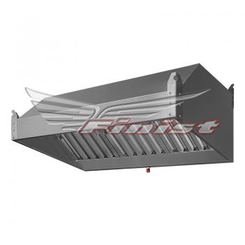 Зонт вытяжной нержавеющий — ЗВН-03 – зонт пристенный, применяется в случае, когда оборудование расположено у стены и ограничений по высоте потолка нет. Конструкция считается более эффективной за счет глубины кожуха. Также возможна установка светильников и вентилятора. Рекомендуемое оборудование, над которым устанавливают зонт: пароконвектомат, зона приготовления пищи, гриль.