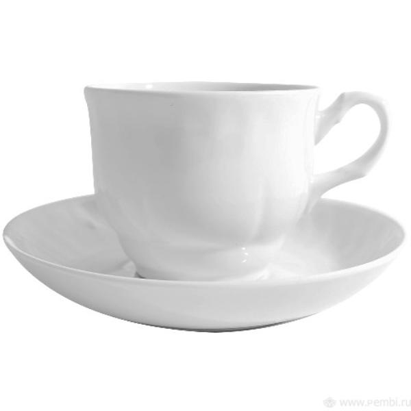 Чайная пара "Тюльпан. Белье" состоит из чашки и блюдца, изготовленных из высококачественного фарфора.