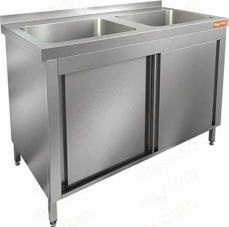 Стол нержавеющий закрытый купе с моечными ваннами HICOLD НСЗК2М-11/6Б