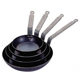 Эта «лионская» сковорода из листовой воронёной стали толщиной 2 мм обеспечивает отличное распределение тепла.