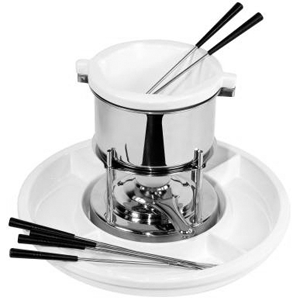 Фондю для шоколада 600 мл, керамика/нерж, D=32/15, H=22см, белый, металл.