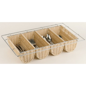 Емкость для столовых приборов 4 секции 53*32,5 см. h=10 см. полиротанг+нерж. APS