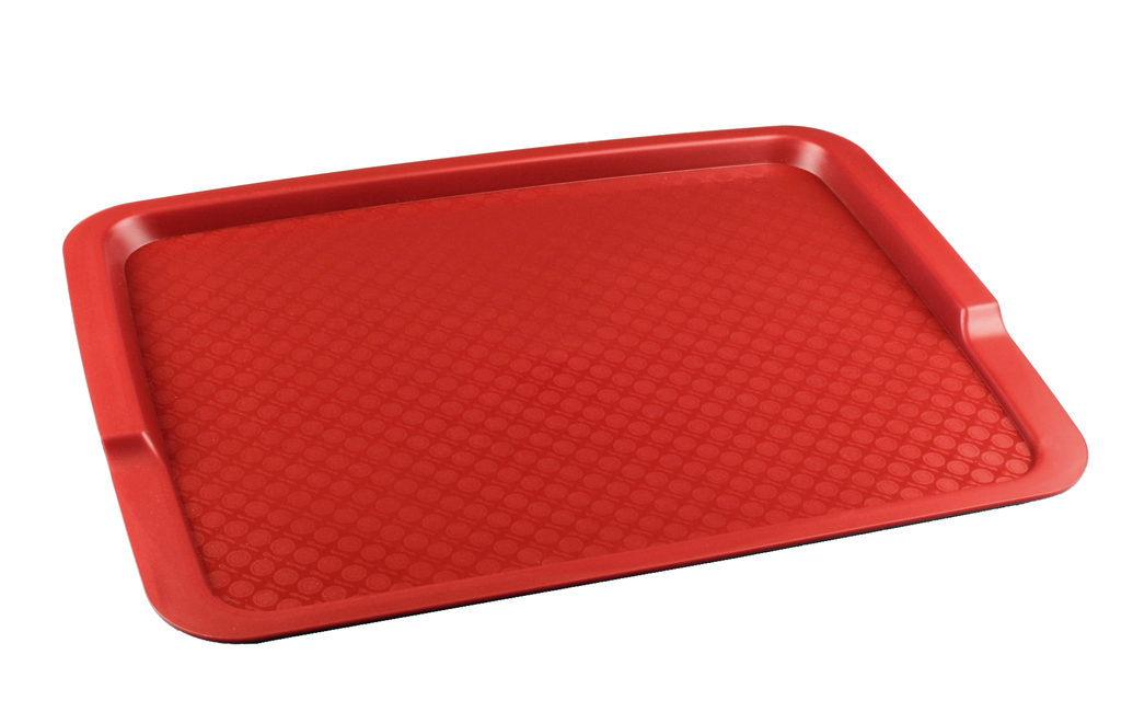 • Поверхность — шагрень в виде фирменного знака общепита. Поднос для фаст-фуда, используются бортики разной высоты