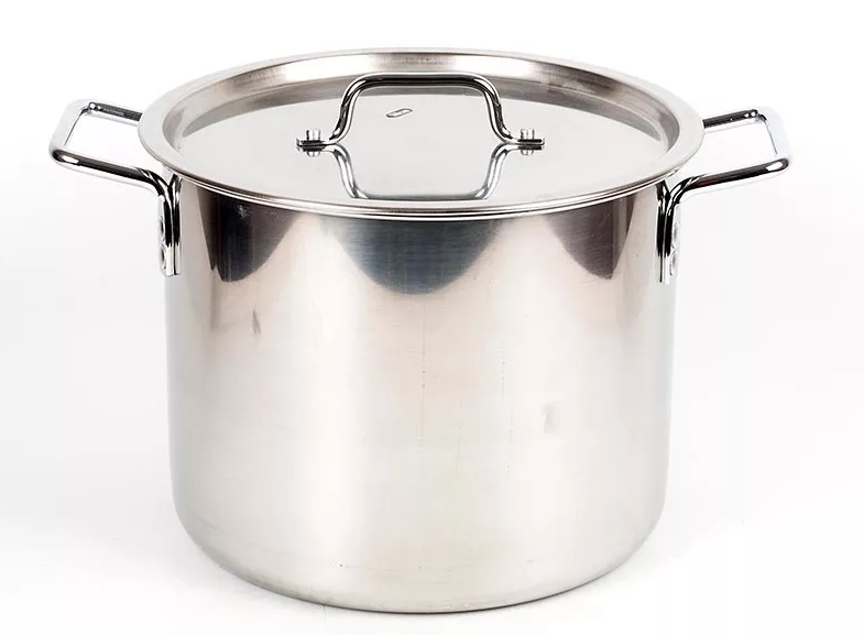 Крышка металлическая. Ручки усиленные, прикрепленные методом клепочной фиксации. Цилиндрическая форма корпуса, зеркальная наружняя полировка. подходит для всех видов плит, кроме индукционных.