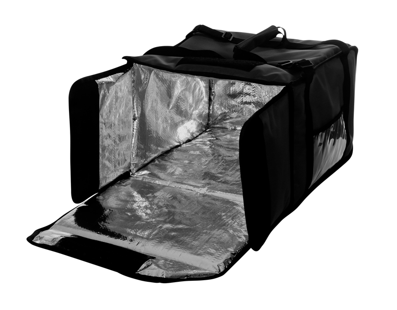 Термосумка на 5-6 пицц 420х420х300 мм фольгированная большая черная с вентиляцией