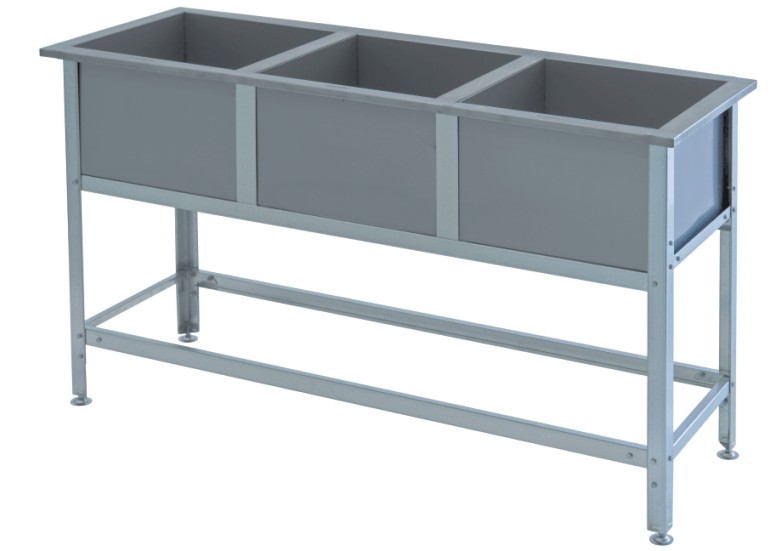 Ванна моечная ВСМ-С-3.600-02 (ВСМ-3/600) - предназначена для установки на кухнях предприятий общественного питания. Модель оснащена подогнутой кромкой по периметру мойки и ножками с регулируемой опорой. Каркас разборный выполнен из оцинкованной стали толщиной 1,2 мм, ванна сварная - из стали марки AISI 304 толщиной 0,8 мм и опоры стоек - из нержавеющей стали с пластиковой опорой внизу.