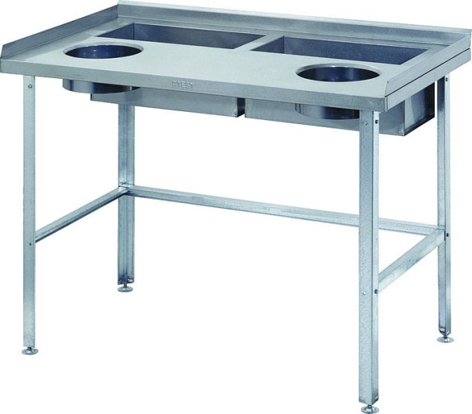 Столы серии СО предназначены для дочистки и обработки корнеплодов и овощей. Стол СО-1/1200/800 оснащен двумя  ваннами. Также стол имеет два отверстия в столешнице, под которыми помещается емкость для сбора отходов. Это позволяет одновременно оборудовать два рабочих места, очищать два вида корнеплодов, либо помещать в одну из ванн очищенные овощи, тем самым, предотвращая возможное заветривание овощей. Стол оборудован тремя бортами.