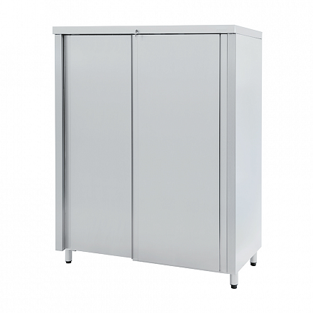 Шкафы для посуды серии ШЗК предназначены для использования на предприятиях общественного питания для кратковременного и длительного хранения котлов, баков и другого кухонного инвентаря. Шкаф выполнен из пищевой нержавеющей стали AISI430, что является необходимым условием эксплуатации в кухонных помещениях, и обеспечивает его использование в помещениях с повышенной влажностью. Для удобства пользования, шкаф снабжён дверцами "купе", конструкция которых предотвращает проникновение внутрь шкафа грызунов. Дверцы шкафа снабжены замком, что предотвращает проникновение внутрь посторонних. Полки шкафов рассчитаны на нагрузку до 30 кг. Ножки шкафов снабжены регуляторами высоты, что позволяет при их установке устранить неровности пола. Опоры регуляторов высоты выполнены из нержавеющей стали, что предохраняет их от коррозии.