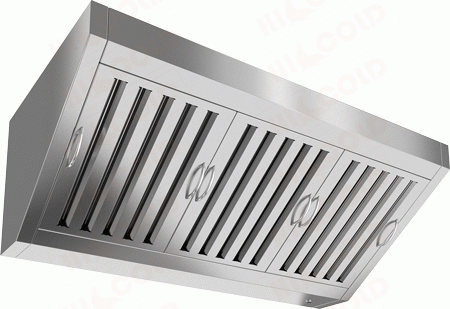 Оснащен съемными жироулавливающими фильтрами лабиринтного типа. Материалом изготовления служит нержавеющая сталь.