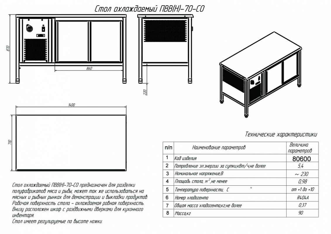 Стол охлаждаемый ПВВ(Н)-70 СО купе (71001080600)