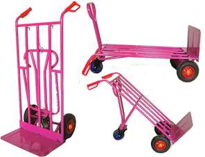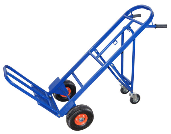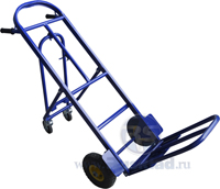 Тележка-трансформер ТГУ-300, грузовая универсальная. Возможность использования тележки в 3-х фиксированных положения: 1. Вертикально 2. С наклоном на угол 45°. 3. Горизонтально. Г/п тележки до 200 кг. Покраска - порошковая. Упаковка - картон + стрейч пленка. На тележку устанавливаются основные колеса диаметром 250 мм (Литая резина) и диаметром 250 мм (Пневматические надувные) мм и дополнительныее опорные колеса диаметром 125 мм.