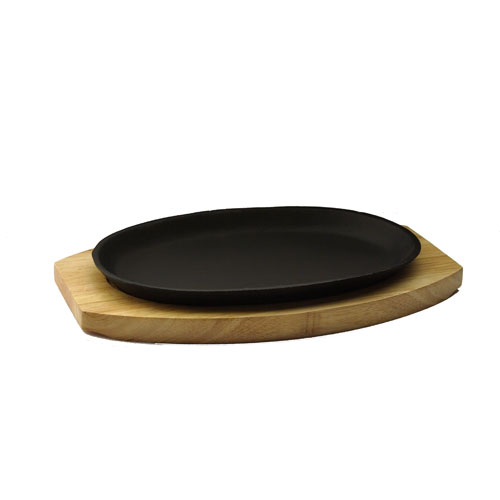 Сковорода 27*18 см. чугун. овальная на дерев. подставке /5/