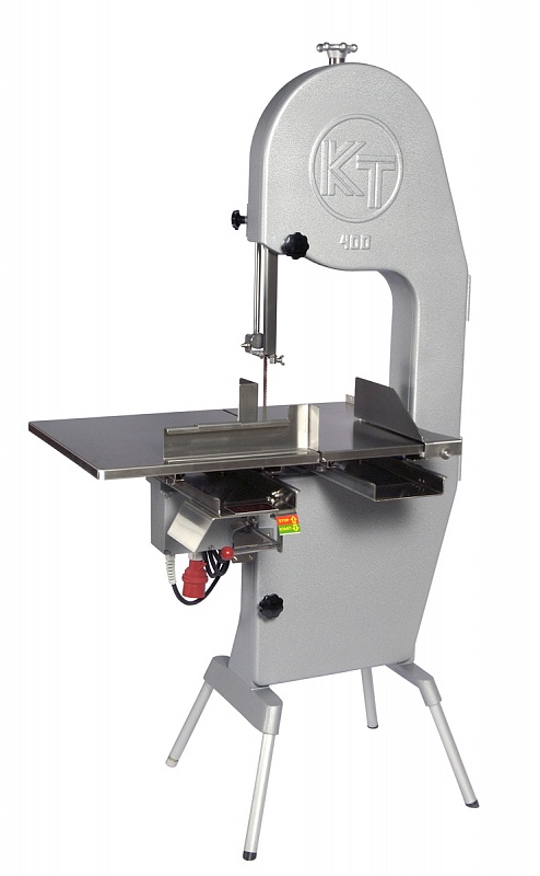 Пила для мяса Koneteollisuus Oy (KT) 325 используется на предприятиях пищевой промышленности и торговли для нарезки на куски свежего и замороженного мяса, рыбы и птицы. Модель с 1 скоростью оснащена подвижным столом и тормозным двигателем, благодаря которому режущее полотно останавливается мгновенно после отключения электропитания. Рабочее полотно, защитный кожух и кожух полотна выполнены из нержавеющей стали, корпус пилы и ножки - из алюминия.