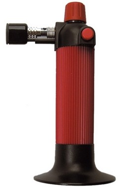 Горелка для карамелизации. Проста и надёжна в применении при помощи кнопки пьезоэлемента, автоматического включения, с регулируемым пламенем. Используется с бутаном (газ для зажигалок). Лёгкая заправка.