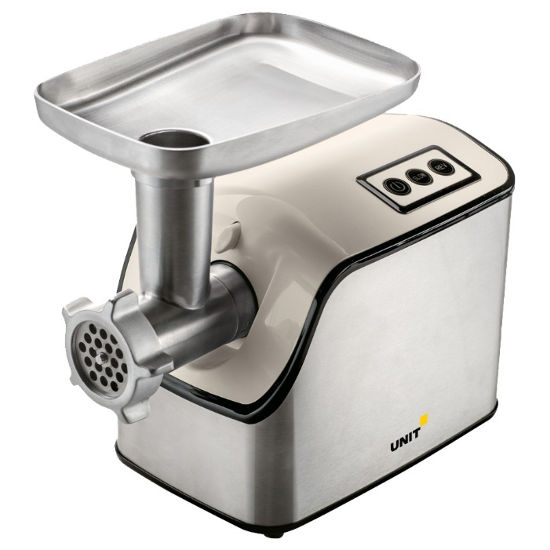 Мясорубка UNIT UGR-459 – электрическая мясорубка стильного серебристого цвета. Благодаря прорезиненным ножкам мясорубка устойчиво стоит на столе, а ножи из высококачественной стали гарантируют отличное качество работы и срок службы. В комплекте с мясорубкой идут толкатель и насадки для приготовления колбас и кеббе. Также мясорубка UNIT UGR-459 оснащена удобным дисплеем. Данная мясорубка станет отличным пополнением вашей кухонной техники.