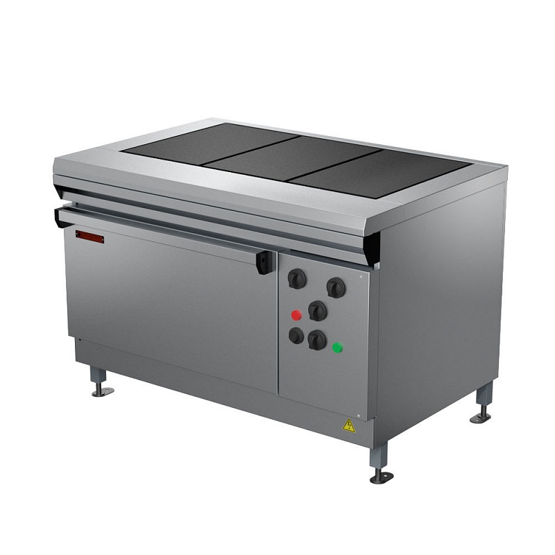 Плита электрическая 3-х конфорочная ПЭ-0,51ШП-1 - рабочий стол и лицевые панели выполнены из н/стали; каркас — черный металл с полимерным покрытием.