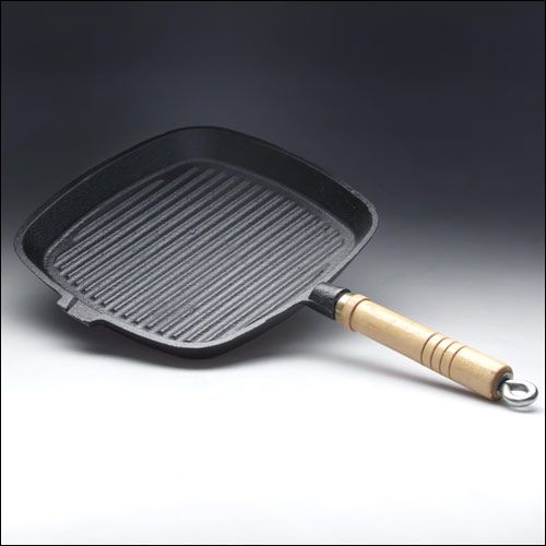 Сковорода чугунная рифленая 230х230 мм с деревянной ручкой Luxstahl [HE85]