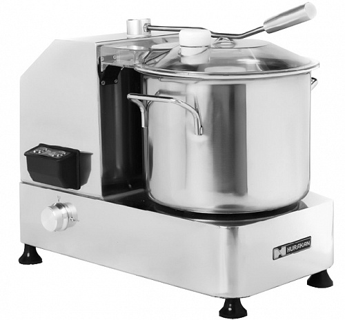 С помощью куттера Hurakan можно дробить орехи, сухари, шоколад, рубить мясо, измельчать любые продукты. Опция регулирования скорости вращения позволяет получить крупно-, средне- и мелкорубленые продукты, а также тонкоизмельченные массы (муссы, суфле, паштеты). Конструктивной особенностью данной модели является боковое расположение чаши, что позволяет избежать нагрева продукта от работающего двигателя.
