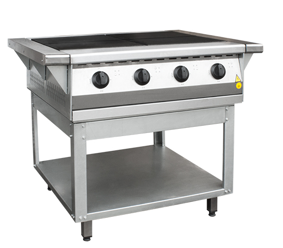 Плита электрическая 4-х конфорочная напольная без жарочного шкафа ПЭП-0,48-01 (лицо нерж.) предназначена для тепловой обработки пищевых продуктов (варка, жарка, разогрев) на предприятиях общественного питания.
