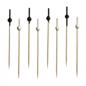 Пики дерев. Черно-Белые шарики 50+50 шт. 10 см. 100 шт/уп. бамбук /1/40/