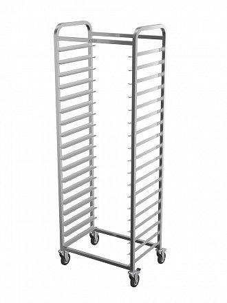 Шпилька КШ-Л-1.18-600.400-02 - серии Люкс предназначена для транспортировки и хранения листов для выпечки на предприятиях общественного питания и торговли. Модель оснащена 4 поворотными колесами, 2 из которых с тормозными устройствами. Подгиб кромок изделия исключает получение травм при эксплуатации и санитарной обработке. Сварной каркас выполнен из труб квадратного сечения из нержавеющей стали AISI 304.