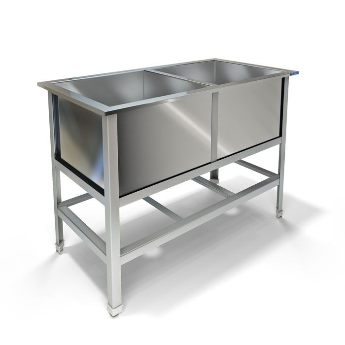 Ванна моечная ВМ-21/530 - используется на предприятиях общественного питания и торговли для мытья и ополаскивания продуктов, посуды и различного инвентаря. Модель с закругленными краями оснащена регулируемыми по высоте ножками, что позволяет компенсировать неровности пола. Сварной каркас выполнен из металлического профиля толщиной 2 мм, покрытого порошковой краской, сварные мойки - из нержавеющей стали AISI 304 толщиной 0,8 мм, выпуски - из нержавеющей стали.