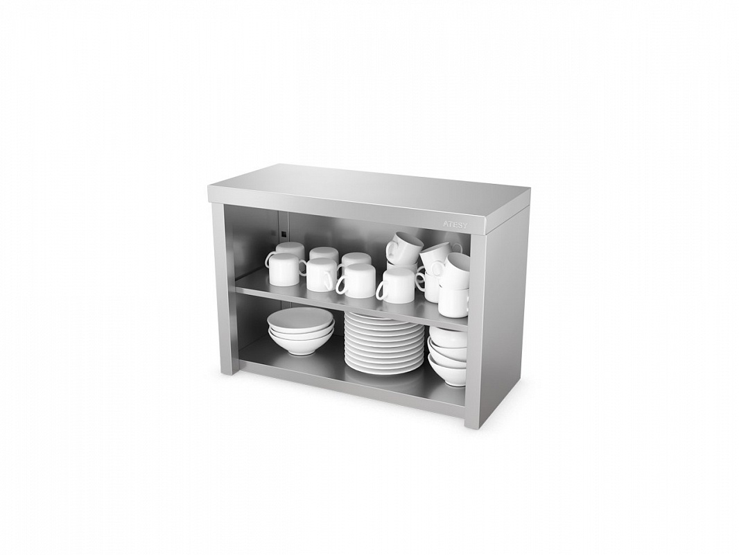 Полка полуоткрытая без дверок ППК-С- 950.420.640-02 (ППК-950) - предназначена для открытого хранения и демонстрации продуктов, требующих постоянной вентиляции, а также наиболее часто используемой посуды и инвентаря на предприятиях общественного питания и торговли.Модель оснащена внутренней полкой. Полка выполнена из нержавеющей стали AISI 430, задняя стенка - из оцинкованной стали толщиной 1,2 мм и внутренняя полка - из нержавеющей стали.