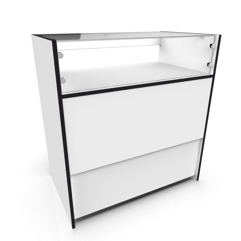 Прилавок с малым ящиком на замке ПР-36 (Цвет Белый с черной кромкой )
