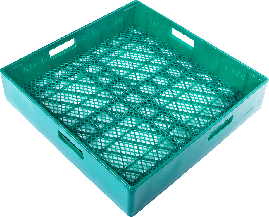 Внутренние размеры кассеты 466х466 мм. Дно кассеты для столовых приборов, в отличие от нейтральной кассеты, имеет мелкую ячейку, которая не позволяет мелким предметам проваливаться. Эта кассета специально предназначена для мытья столовых приборов (ложек, вилок, ножей). Столовые приборы укладываются прямо в кассету и накрываются сверху одной металлической сеткой (код – 11000101475) во избежание их вылета из кассеты во время мойки.