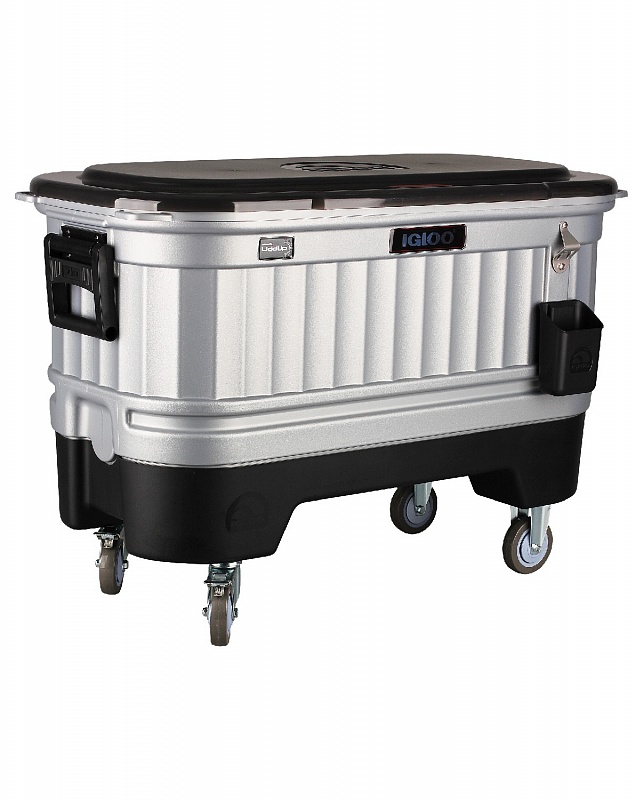 Igloo Party Bar™ Liddup®125 — универсальный изотермический контейнер для транспортировки охлажденных или замороженных продуктов и напитков с резиновыми колесами, складными боковыми ручками и диодной подсветкой камеры.