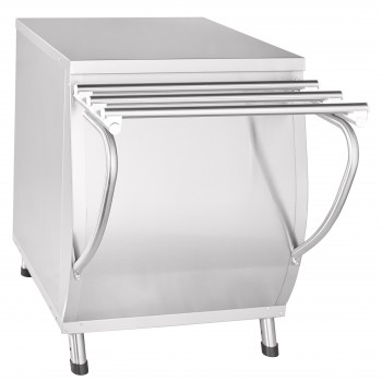 Модуль нейтральный используется в качестве нейтрального элемента в линии раздачи и предназначен для кратковременного хранения и раздачи потребителю хлебобулочных и кондитерских изделий, а также для установки на его столе термостата с напитками. Внизу открытый шкаф для хранения кухонного инвентаря. Направляющие для подносов входят в комплект поставки. Прилавок имеет регулируемые по высоте ножки.