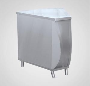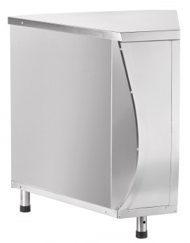 Модуль поворотный внешний служит в качестве нейтрального стола, одновременно позволяя выстраивать технологическую линию под углом 45*, не разрывая линию направляющих для подносов. Все элементы модуля изготовлены из нержавеющей стали. В комплект входят направляющие для подносов. Ножки регулируются по высоте.