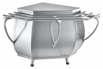 Модуль поворотный внешний служит в качестве нейтрального стола, одновременно позволяя выстраивать технологическую линию под углом 90*, не разрывая линию направляющих для подносов. Все элементы модуля изготовлены из нержавеющей стали. В комплект входят направляющие для подносов. Ножки регулируются по высоте.