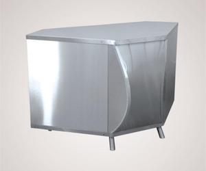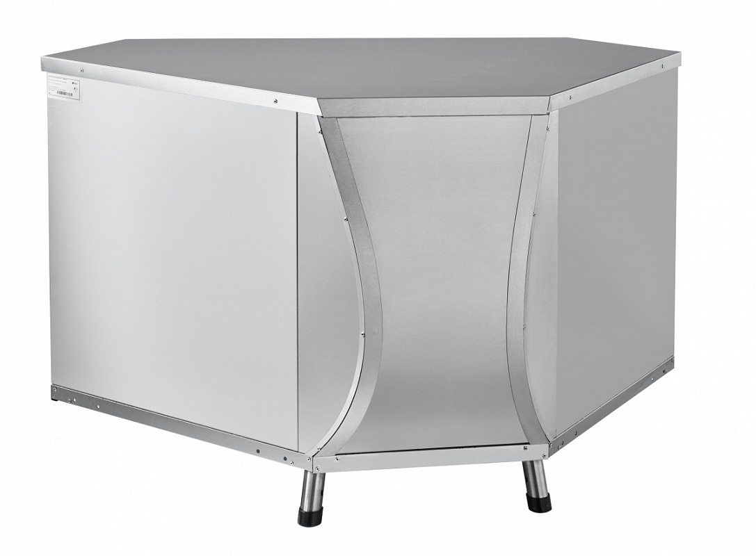 Модуль поворотный внешний служит в качестве нейтрального стола, одновременно позволяя выстраивать технологическую линию под углом 90*, не разрывая линию направляющих для подносов. Все элементы модуля изготовлены из нержавеющей стали. В комплект входят направляющие для подносов. Ножки регулируются по высоте.