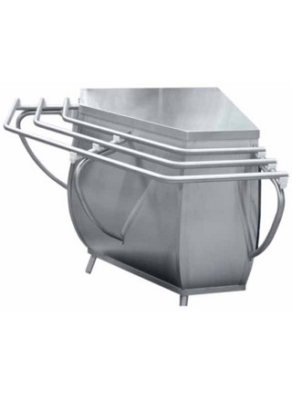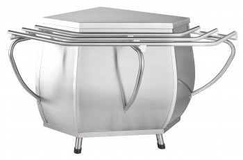 Модуль поворотный внешний служит в качестве нейтрального стола, одновременно позволяя выстраивать технологическую линию под углом 90*, не разрывая линию направляющих для подносов. Все элементы модуля изготовлены из нержавеющей стали. В комплект входят направляющие для подносов. Ножки регулируются по высоте.