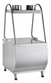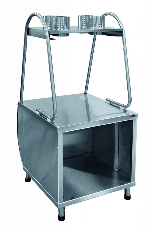 Прилавок для столовых приборов и подносов ПСП 70М  модели «Патша» предназначен для хранения столовых приборов (ложек и вилок) и подносов, а также хлеба в составе линии самообслуживания на предприятиях общественного питания. В комплекте 4 пластиковых Перфорированных Ёмкости для столовых приборов диам. 120мм. Ножки регулируются по высоте.