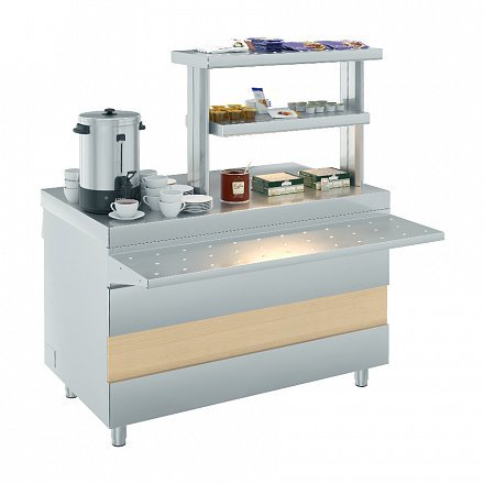 Прилавок для горячих напитков предназначен для выкладки продуктов и напитков, не требующих подогрева или охлаждения, а также для установки дополнительного оборудования и приспособлений.