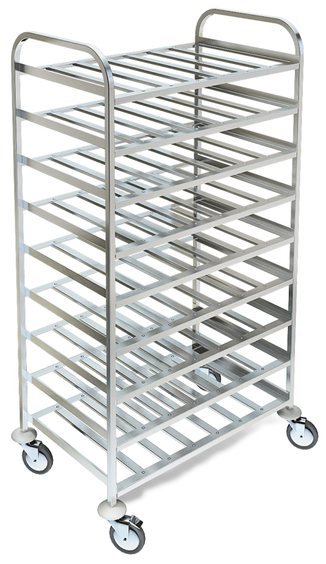 Стеллаж-шпилька СтШ 600*400*1800, 6 полок сплош. нерж. 0,8мм, обвяз. на верхн. и нижн. полках, колеса платформ. Ø100мм