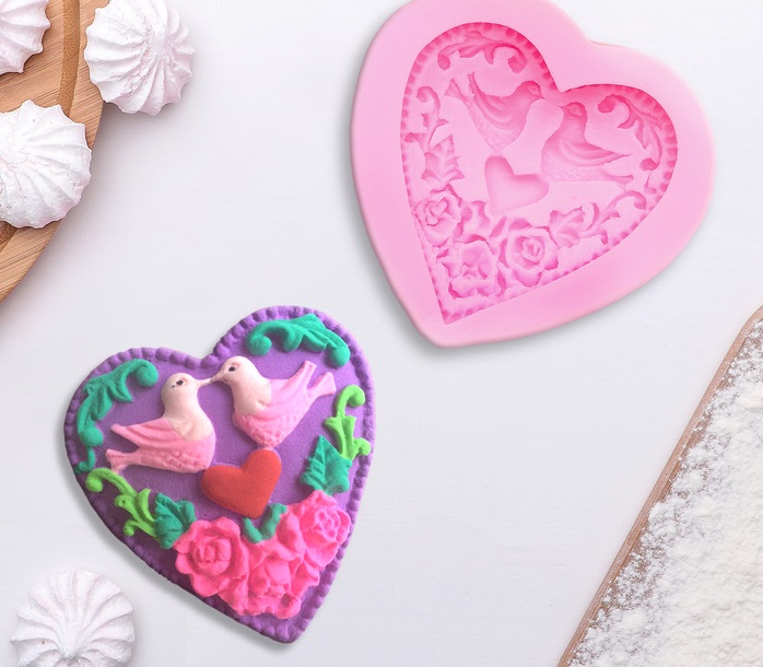 Молд силиконовый 6,8×6,2 см "Сердце с голубками"