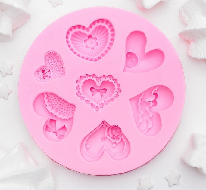 Молд силиконовый 9,5×9,5 см "Сердца ажурные"
