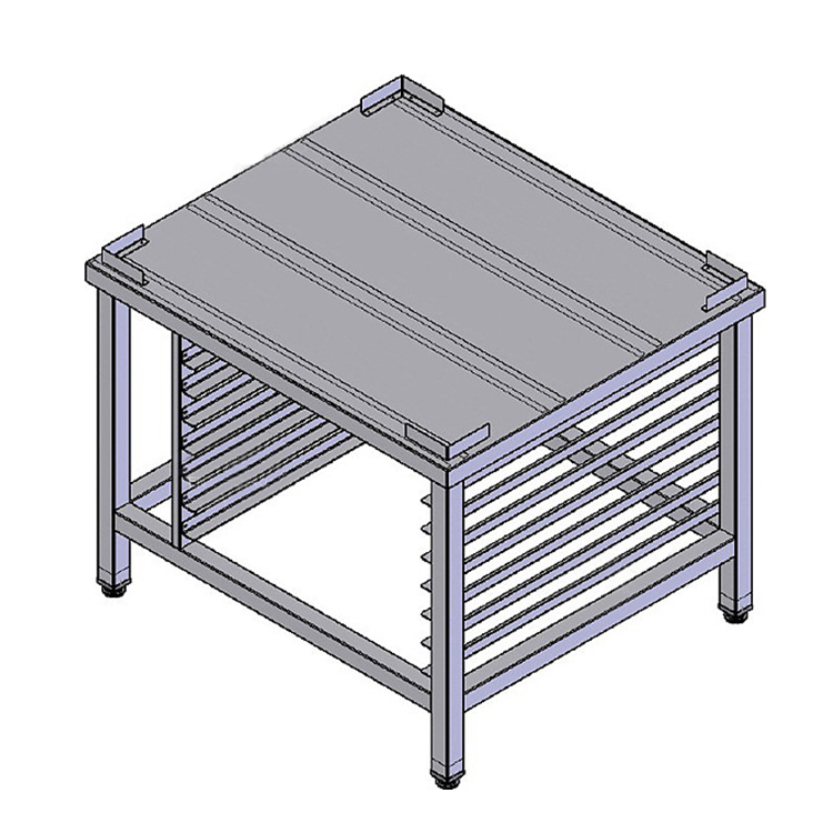 Стенд т.м. WLBake серии S, мод. S-168 с направляющими (600x400)7 для печей XB/XBC/XEBC и другого соразмерного оборудования, н/ст AISI 430, сварная конструкция, каркас труба 40х40мм, обвязка с 4-х сторон, столешница, односекционная, 7 уровней направляющих д/противней 600х400мм (в комплект не входят), расстояние между уровнями 60 мм, загрузка по широкой стороне, регулируемые ножки