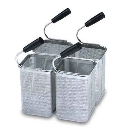 Комплект из 4х корзин GN1/6 предназначен для макароноварок с ванной размером GN 2/3 (600, 650, 700 и 740 серии, а также встраиваемые модели).
