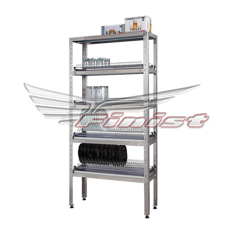 Стеллаж для сушки тарелок СтПНпт 900*300*1700, 4 полки-сушки краш. д/тарелок, верх. полка нерж. сталь, поддон нерж. стойки уголок нерж.