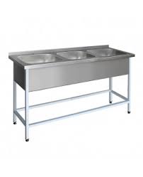 Ванна моечная ВМНц-3 1800*700*870 борт, увеличенная полка с отверстием для смесителя на каждую мойку, локтевой смеситель 3 шт., сифон 3шт., цельнотянутая мойка 500*500*300, каркас уголок нерж.