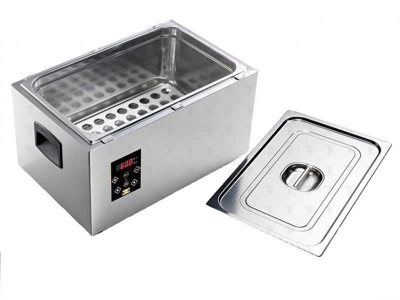 Аппарат для приготовления блюд при низких температурах VS 1/1 с крышкой предназначен для приготовления различных блюд с использованием технологии Sous Vide (статический подогрев воды) на профессиональных кухнях ресторанов, кафе, баров и других предприятиях общественного питания. Выполнен в форме контейнера GN 1/1 из нержавеющей стали и оснащен электронной панелью управления с цифровым дисплеем показывающим текущую температуру, а также крышкой из нержавеющей стали и удобными ручками для переноски. 5 программ, а также возможность установки температуры с шагом 0,2°C, позволяют разнообразить меню приготовления. Особенности модели: защита от холостого хода, защита нагревательного элемента с помощью панели из нержавеющей стали.