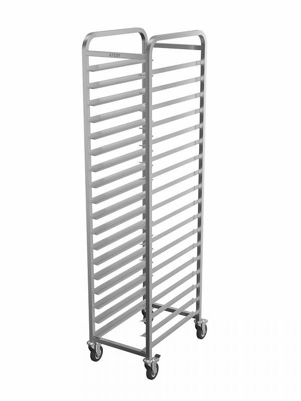 Шпилька КШ-С-1.18-350.600-02 для подносов серии Стандарт РАЗБОРНАЯ, AISI304, вместимость подносов 350х600 мм - 18шт., расстояние между уровнями 93 мм, 2 колеса с тормозом.