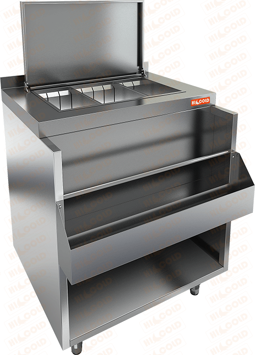 Барный модуль с теплоизолир. ванной для льда НБМВЛ-6/6БККР (с бортом) с крышкой и лотком с доп. карманом.