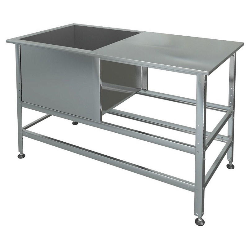 Ванна моечная  со столом - сварная мойка. Серия «Лайт» ВМЛс - каркас из уголка, из оцинкованной стали. Каркас оснащен регулируемыми по высоте опорами для компенсации неровностей пола. Ванны поставляются как в собранном так и в разобранном виде.